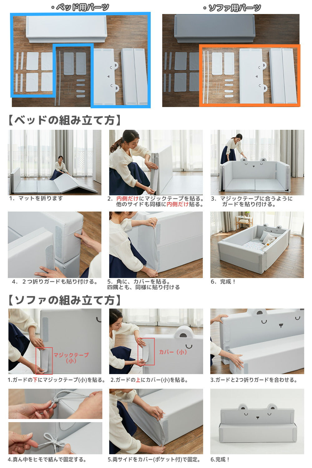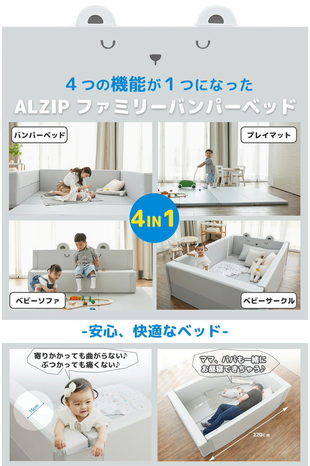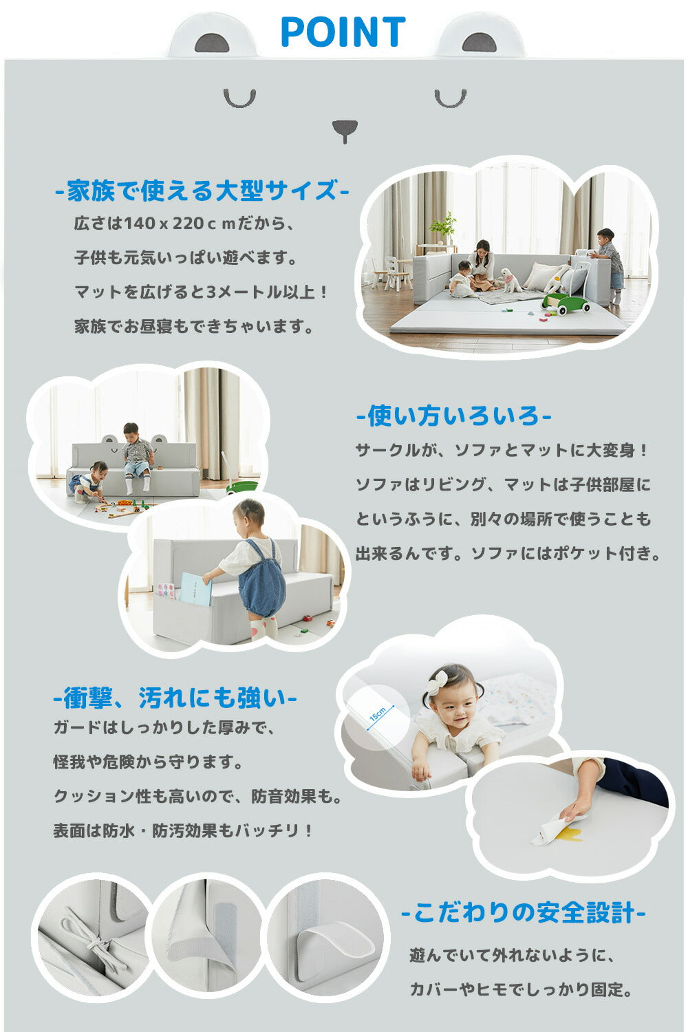 サークルマット ベビーサークル プレイマット - ファミリーガードベッド (グレー)